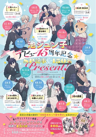 池ジュン子先生のデビュー15周年を記念したスペシャル記事とプレゼント企画を実施します。池先生描き下ろしのスペシャルイラストで、歴代連載作と華麗なる経歴を振り返ります。