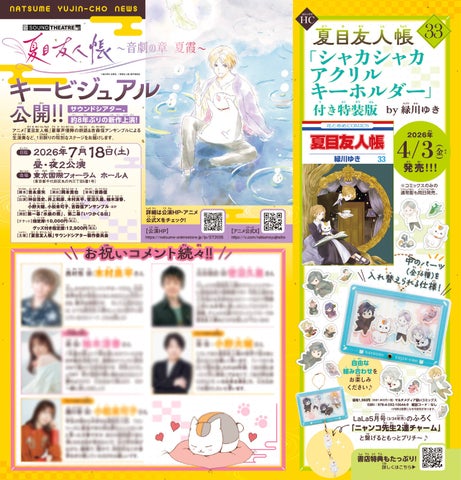 緑川ゆき先生による大人気作品「夏目友人帳」の最新情報と、関連企画が発表されました。