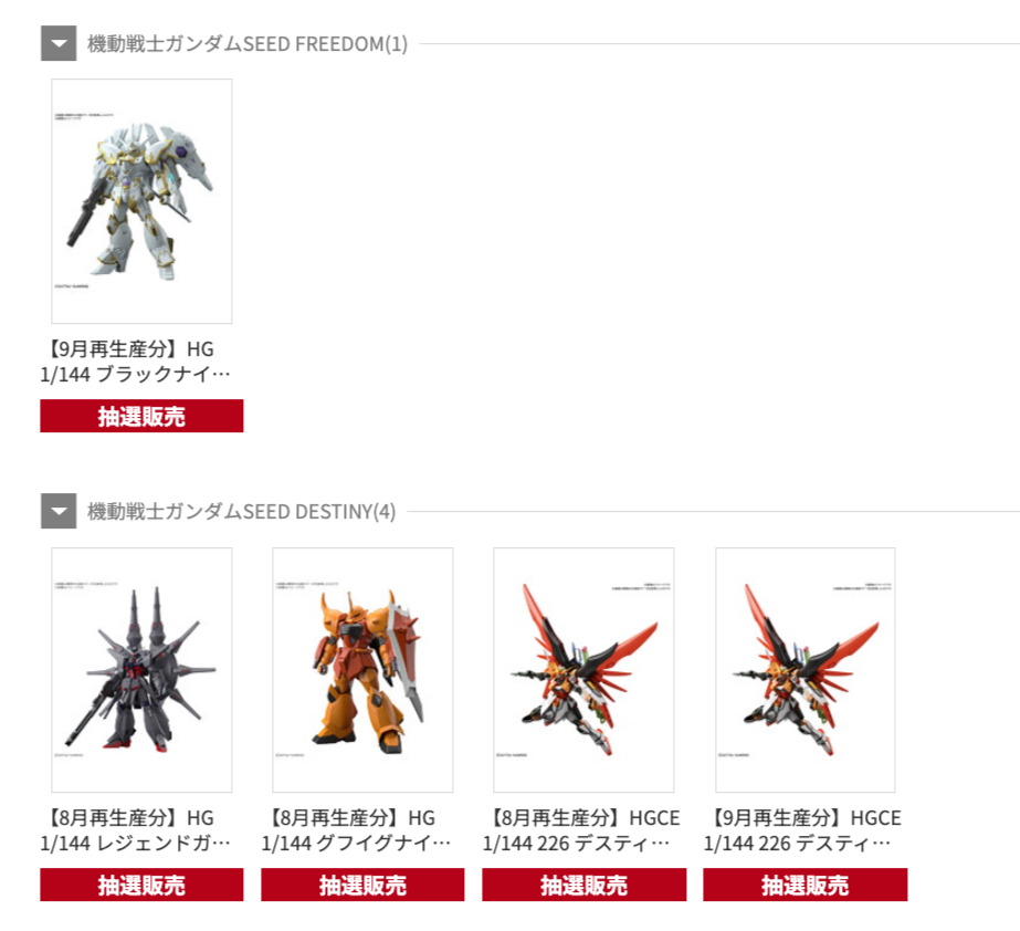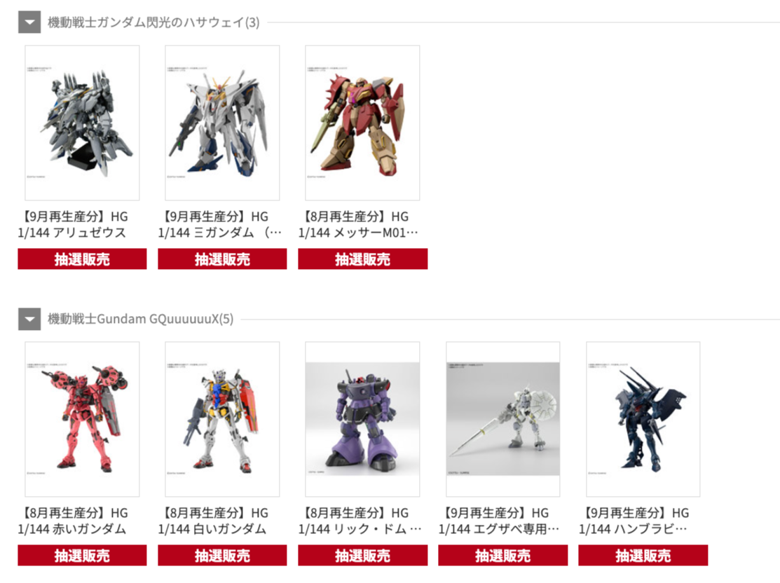 抽選販売では、多数の人気プラモデルが登場します。対象となるのは、2026年7月から9月に再入荷を予定している商品群です。