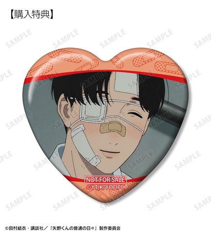 当商品を1BOX、または単品にて1BOX相当数ご注文ごとに、「矢野剛 場面写ハート型缶バッジ AMNIBUS限定特典」を付属します。