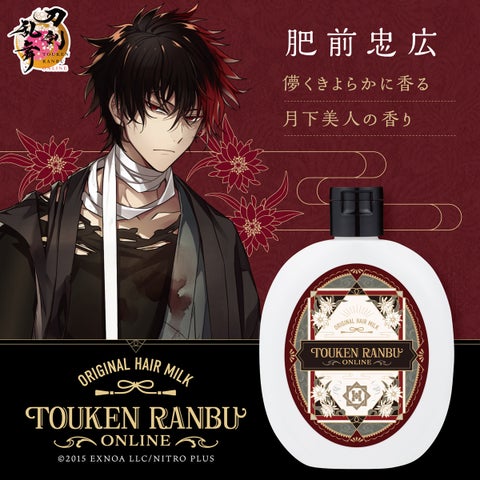 本商品は、「刀剣乱舞ONLINE」に登場する刀剣男士、小竜景光、歌仙兼定、山姥切長義、肥前忠広、一文字則宗の5振りをそれぞれイメージしたアウトバスヘアミルクです。本体ボトルデザインには各刀剣男士の装いをモチーフとして取り入れ、洗面所やドレッサーに馴染む仕様に仕上げています。