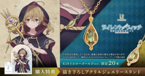 ユートレジャーは、『サイレント・ウィッチ 沈黙の魔女の隠しごと』コラボネックレスの予約受付を期間限定で開始します。購入特典として描き下ろしアクリルジュエリースタンドが付属します。
