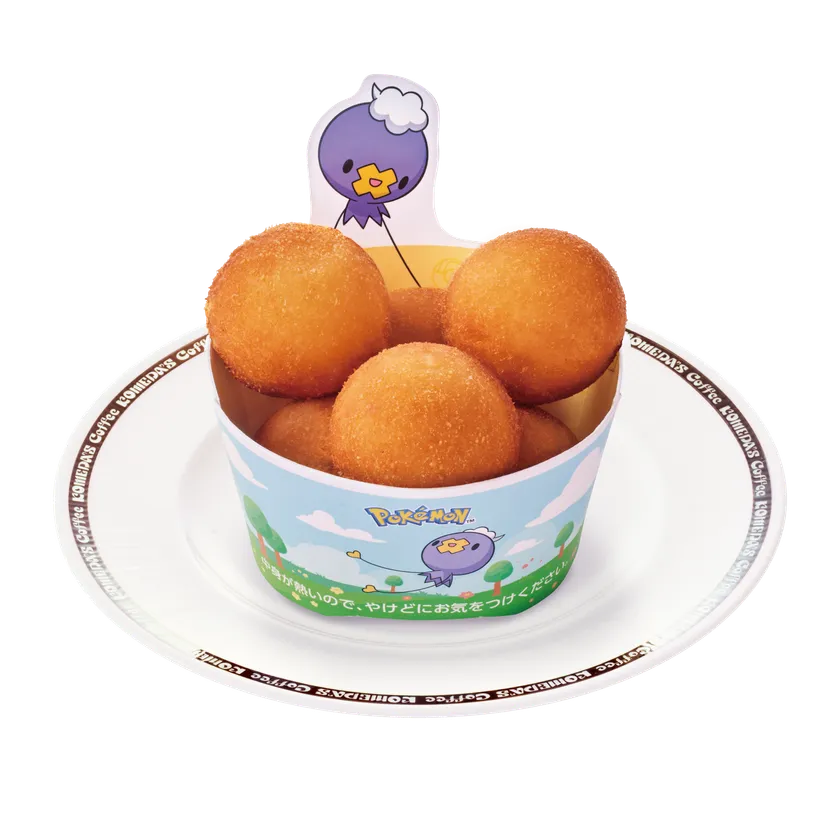 フワンテをイメージした、ころっとした形のチーズボール。外はサクッ、中はもっちり食感の生地の中から、とろ~り熱々のチーズソースがあふれます。フワンテデザインの紙カップもポイントです。