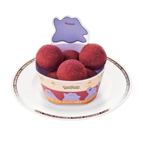 第1弾では、メタモンをテーマにしたオリジナルメニューが登場します。対象メニューを注文すると、期間ごとにデザインが異なる「豆菓子風チャーム」を1点プレゼントします。