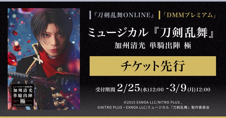 ミュージカル『刀剣乱舞』加州清光 単騎出陣 極の『刀剣乱舞ONLINE』ゲーム内先行および「DMMプレミアム」会員向けチケット先行受付が、本日2026年2月25日より開始しました。