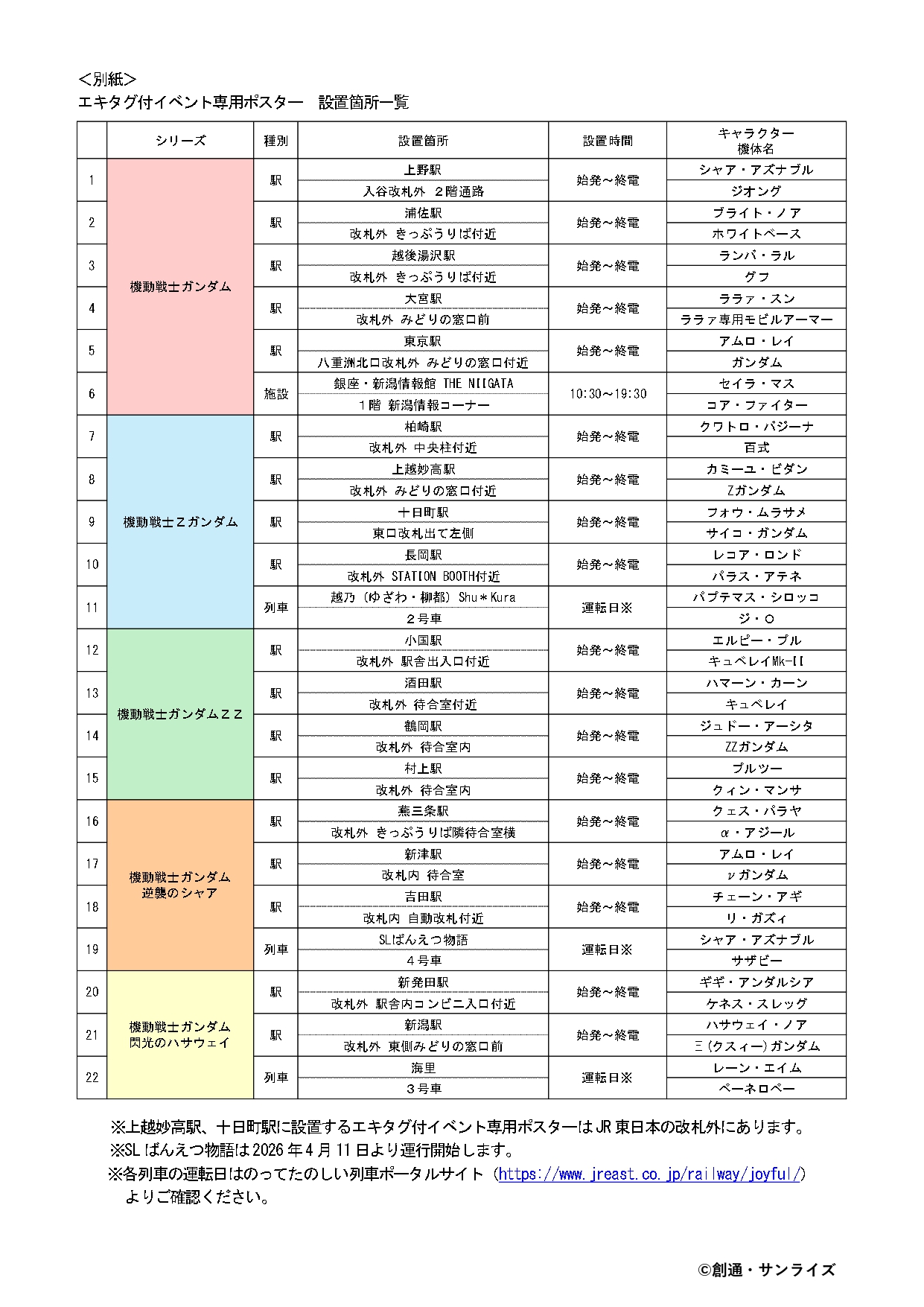 JR東日本 ガンダムシリーズエキタグスタンプラリー開催概要