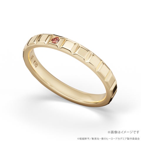 アニメ『僕のヒーローアカデミア』に登場するキャラクターの「個性」を表現したファッションリングです。イメージカラーの天然石と内側のキャラクター名刻印が特徴です。