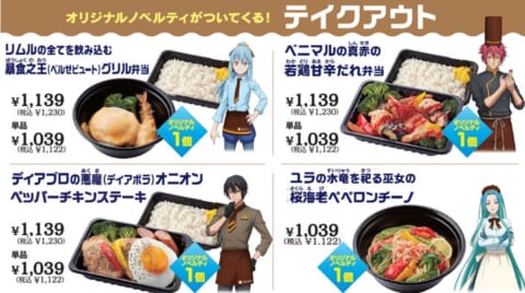フード系のコラボメニューはテイクアウトが可能です。テイクアウトには「転スラスペシャルセット」についてくる和食または洋食セット、デザートは付属しません。