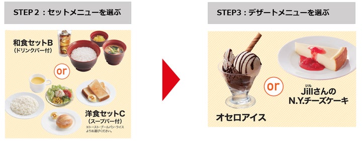 メインとなる4種類のコラボメニューから1品を選び、和食または洋食セットとデザートが付くコラボ限定セットです。価格は1,299円(税込1,428円)です。