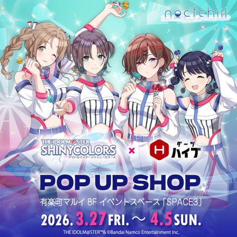 アイドルマスター シャイニーカラーズとダーツグッズ専門店「ダーツハイブ」がコラボレーションします。ダーツライブカード、ノクチルダーツセット、POP UP SHOPなど、多岐にわたる企画が2026年3月12日より順次スタートします。