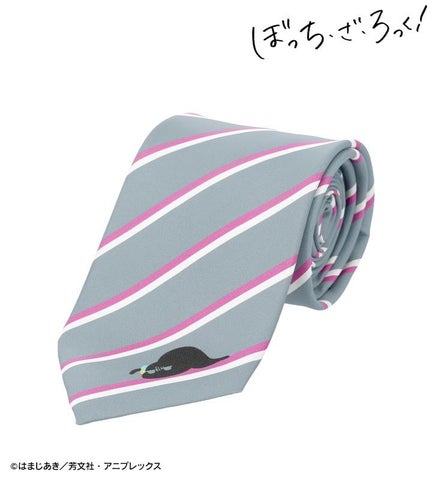 後藤ひとりをイメージしたピンクとホワイトのストライプに、ワンポイントでツチノコぼっちのイラストをデザインしたネクタイです。小剣通しには後藤ひとりのサインをレイアウトし、ビジネスからパーティーシーンまで様々な場面で活用できます。