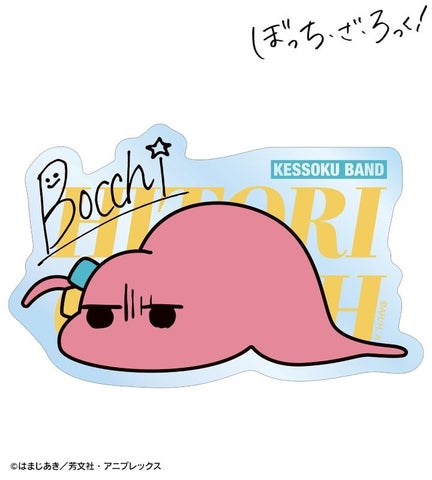 ツチノコぼっちのイラストと後藤ひとりのサインをデザインしたダイカットステッカーです。コーティングを施しているため、耐水性・耐候性に優れています。パソコンやステーショナリーなど、身近な持ち物に貼って楽しむことができます。