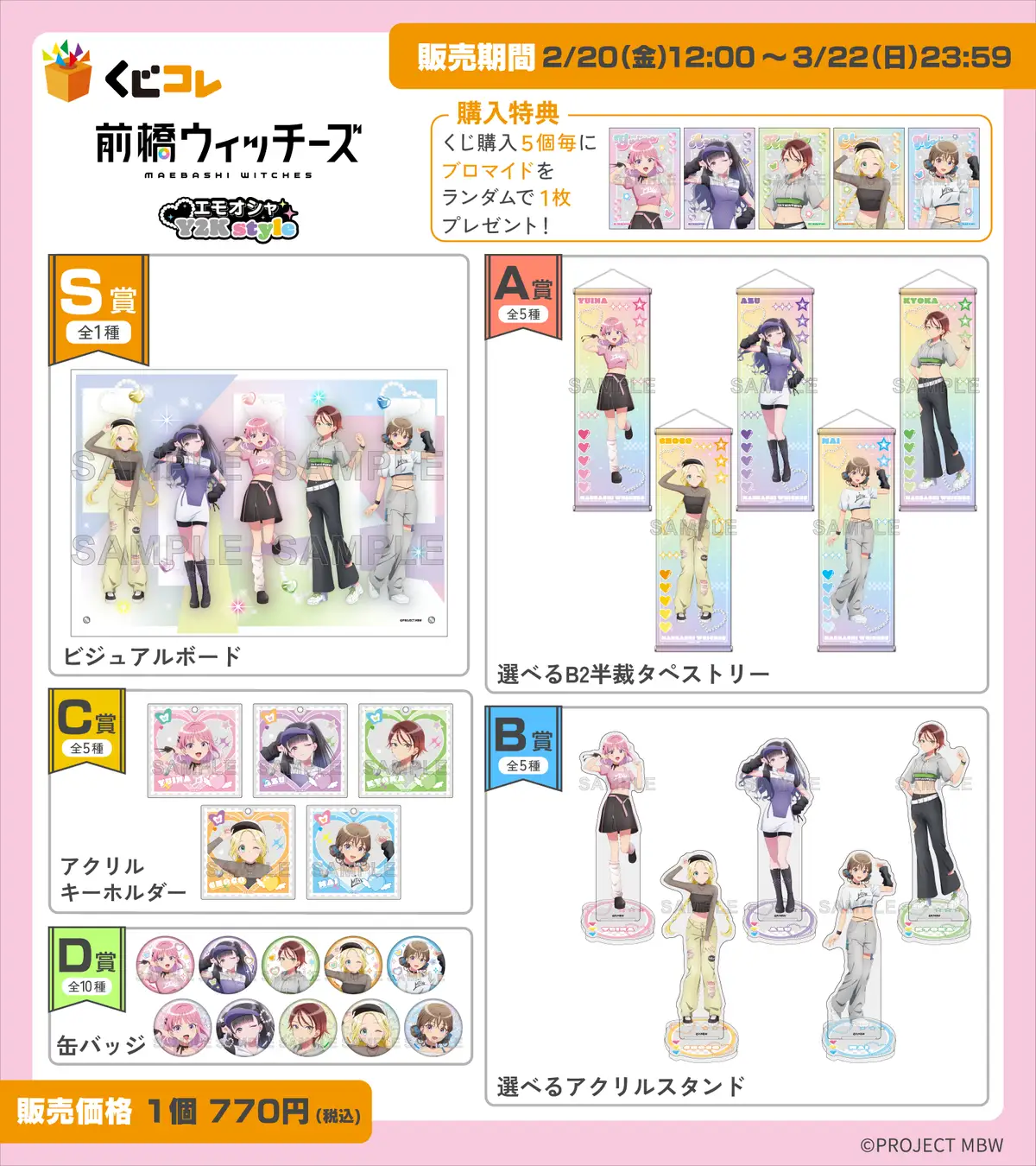 2026年2月20日より、オンラインくじサービス「くじコレ」にてTVアニメ『前橋ウィッチーズ』の新規描き下ろしグッズが登場しました。Y2Kstyleのキャラクターたちが魅力的な、ここでしか手に入らないアイテムを展開します。
