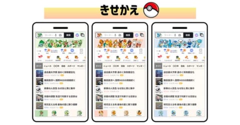Yahoo! JAPANアプリやスマートフォンブラウザー版のYahoo! JAPANトップページ、Yahoo!検索の検索結果ページをポケモンにきせかえられる特別デザインを公開中です。くさ・ほのお・みずタイプをテーマにした3種類のきせかえデザインから選択できます。