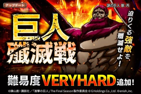 巨人殲滅戦に新難易度VERY HARDを追加しました。迫りくる強敵を殲滅する挑戦が可能です。