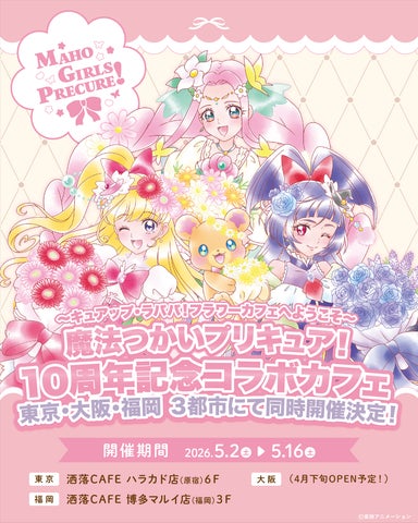 「魔法つかいプリキュア!」の10周年を記念したコラボカフェが、東京・大阪・福岡の洒落CAFEにて開催決定。作品の世界観をイメージしたオリジナルメニューの提供や、新規描き下ろしイラストが登場します。