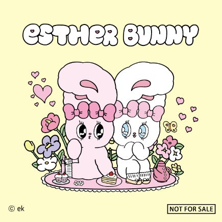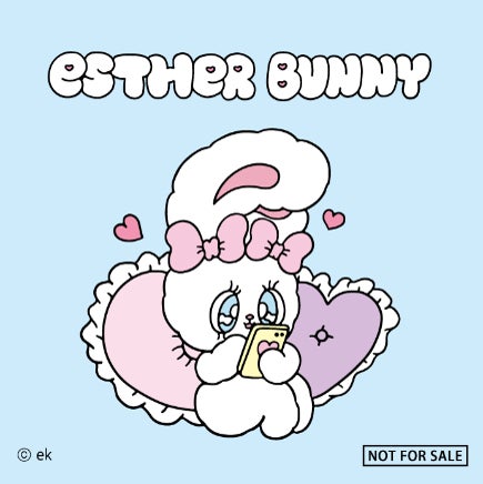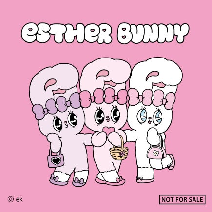 エスターバニーは、韓国系アメリカ人のEsther Kim氏がデザインした、POPでガーリーなテイストのウサギのキャラクターです。ロサンゼルスで生まれ、10代を東京で過ごしたEsther Kim氏の、多様な文化や価値観に触れた経験から生み出された独特の世界観が大きな魅力となっています。自己肯定感や自分らしさを大切にするメッセージ性が、ファッションブランドやコラボレーションを通じて多くの共感を呼んでいます。