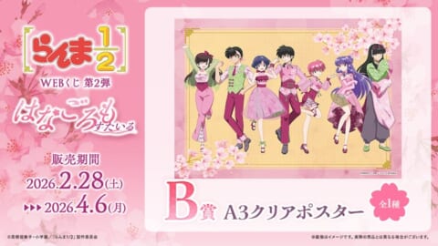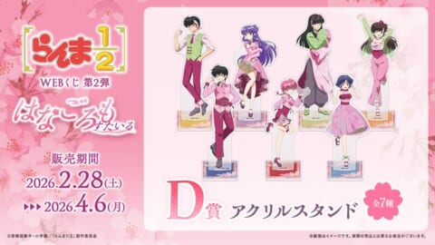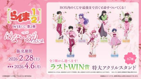 株式会社ディ・テクノは、TVアニメ『らんま1/2』の「WEBくじ第2弾~はなごろもすたいる~」の販売を2026年2月28日より開始しました。桜をテーマにした描き下ろしイラストの豪華グッズが、店頭とオンラインで手に入ります。