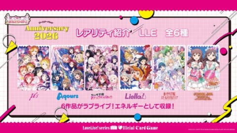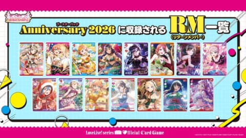 ラブカ1周年を記念した特別なブースターパックAnniversary 2026は、μ’sをはじめとする全5グループに加え、ライバルユニットのメンバーカードも収録し、スクールアイドルミュージカルもラブカに初登場します。