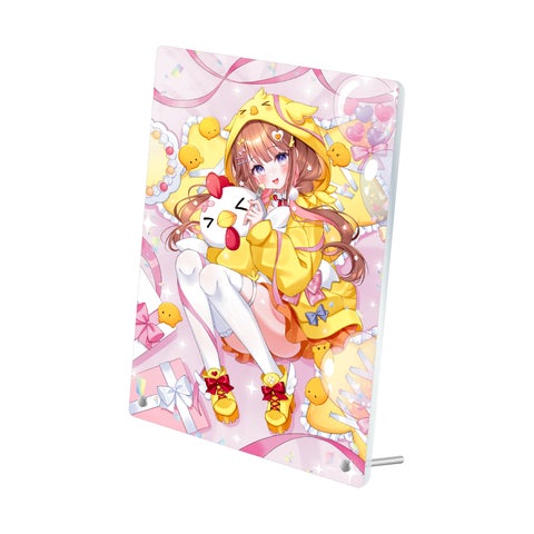 2026年の日和ちひよバースデーグッズは、イラストレーターおとうふ紅茶さん描き下ろしのイラストを使用した「アクリルパネル」「アクリルスタンド」「缶バッジ」の3アイテムが登場します。これらの商品はセット販売に加え、単品でも購入できます。