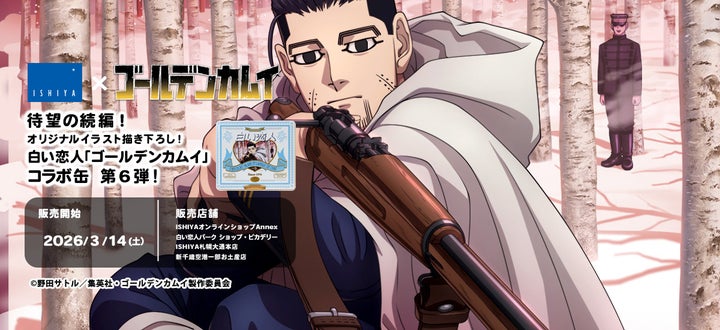 石屋製菓は、TVアニメ『ゴールデンカムイ』と「白い恋人」のコラボレーション第6弾として、尾形百之助デザイン缶を2026年3月14日より数量限定で販売します。