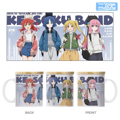 「結束バンド」メンバーのストリートファッションVer.がデザインされたマグカップです。木製のフタが付属しており、デスクワークやリラックスタイムに活躍します。