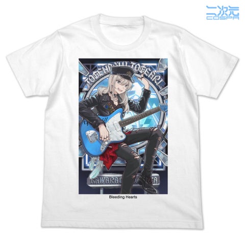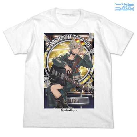 「爆ぜて咲く」PVの世界観を表現したフルカラーTシャツは、井芹仁菜、河原木桃香、安和すばる、海老塚智、ルパの5種を展開します。インクジェット印刷により、フルカラーイラストの魅力を最大限に引き出しています。
