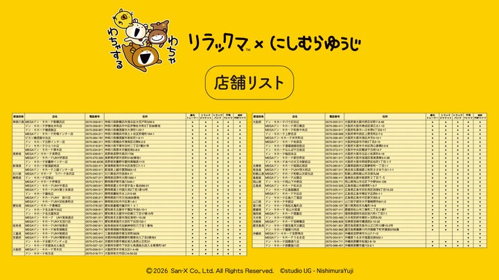 今回ご紹介した「リラックマ×にしむらゆうじ」コラボウェアは、2026年3月7日より全国のドン・キホーテで販売を開始します。お近くのドン・キホーテ店舗で、にしむらゆうじ氏による癒やされるリラックマデザインのアイテムをぜひ手に取ってみてください。
