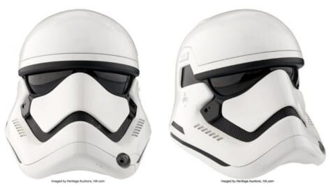 J・J・エイブラムスが監督を務めた『スター・ウォーズ/フォースの覚醒』に登場した、新生ファースト・オーダーのストームトルーパーが実際に着用したオリジナル・ヘルメットです。旧銀河帝国軍トルーパーの伝統的なデザインを踏襲しつつ、現代的な再解釈が加えられた刷新モデルとなっています。
