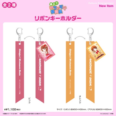 キャラクターの名前が入ったおしゃれなリボンに、アクリルチャームが付いた存在感のあるキーホルダーです。全2種類を展開します。