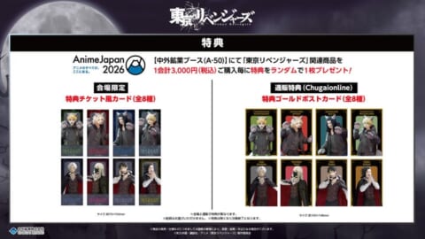 「AnimeJapan 2026」の会場と中外鉱業コンテンツ部ECサイト「Chugaionline」では、それぞれ異なる購入特典を用意しています。