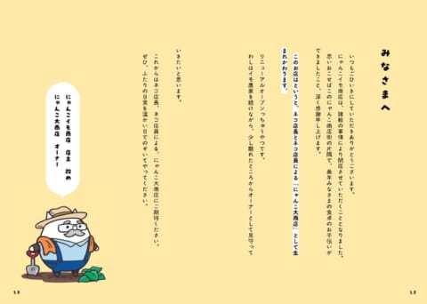 本書の巻頭には、ファン待望の完全新作描き下ろしマンガが収録されています。これまで一切姿を見せなかった、にゃんこ大商店の謎多きオーナーがついに初登場し、ネコ店長とネコ店員が「にゃんこ大商店」を始めることになった感動のきっかけが描かれます。にゃんこ大商店誕生の秘話が明かされる、ファン必読のエピソードです。本書の定価は1,430円(税込)です。
