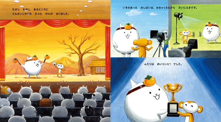 本シリーズでは『にゃんこ大戦争』をはじめ、さまざまなにゃんこ達を描きます。本作『さるかに合戦 ビバ!KONTON!』では、ファンにはたまらないおなじみのにゃんこたちも多数登場します。どこか懐かしいタッチで贈る、プレゼントにもぴったりな一冊です。本書の文は針とら氏、絵はたがわひでき氏が担当し、ポノスが監修を務めます。定価は1,540円(税込)です。