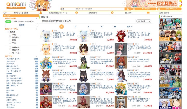 あみあみでは、今回のフィギュア以外にも様々な製品を取り扱っています。