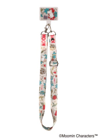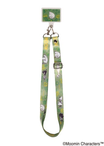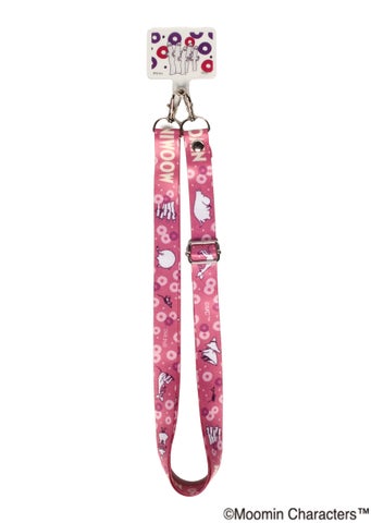 本商品は、ムーミンたちの可愛いイラストがプリントされたスマートフォンホルダーとストラップがセットになったアイテムです。