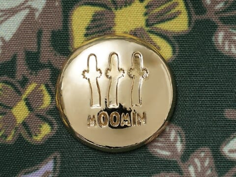 バッグの正面右下には、ゴールドカラーの「ニョロニョロ」のモチーフがあしらわれており、細部にまでムーミンの世界観が表現されています。