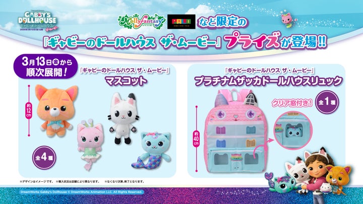 映画『ギャビーのドールハウス ザ・ムービー』の公開に合わせ、2026年3月13日よりモーリーファンタジーなどのアミューズメント施設にて限定プライズが登場します。