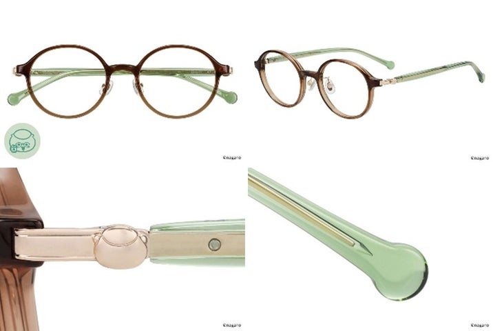 随所にくりまんじゅうらしさを落とし込んだ、大人っぽいラウンド型フレームです。まるっとしたフォルムが特徴で、渋くもかわいらしくもかけこなせます。くりまんじゅうのシルエットとおちょこをレーザー彫りで表現し、ブラウンのグラデーションカラーが施されています。
