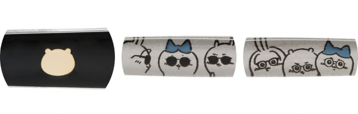 軽量素材でかけやすく、性別や年代を問わずかけやすいベーシックデザインです。ちいかわのシルエットパーツがアクセントになり、サングラスをかけた3にんがCOOLに集まったプリント柄が特徴です。メガネ姿でもCOOLな表情でポーズを決めます。