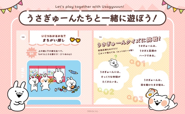 「うさぎゅーん!」と一緒に遊べる、まちがい探しやぬりえ、クイズなどを収録しています。かわいらしくて楽しい「うさぎゅーん!」の世界を、さまざまな形で体験できます。