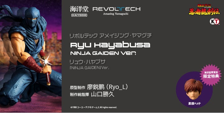 「リボルテック アメイジング・ヤマグチ リュウ・ハヤブサ『NINJA GAIDEN』Ver.」は、2026年3月13日(金)より予約受付を開始します。特典付きでの購入を希望する場合は、海洋堂直営店またはコーエーテクモゲームスオンラインショップをご利用ください。