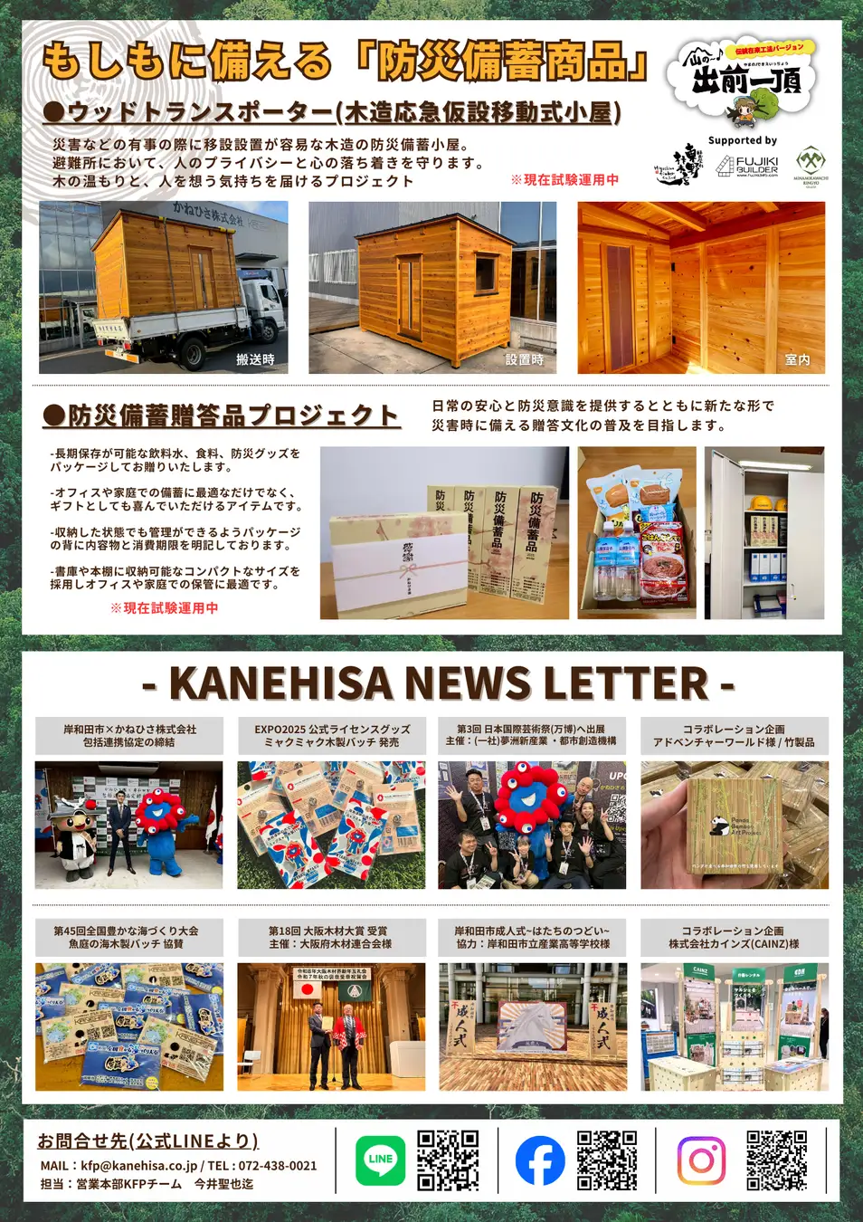 多くの人気を集め完売していた「ミャクミャク木製バッチ」は、今回数量限定で再販されます。かねひさ株式会社は、木質系建材の保管・加工・物流業務を主軸に、「需要の創造」をスローガンとして掲げ、地域産木材の積極的な活用を推進しています。これにより、地域資源の価値向上やアップサイクル事業、環境循環型プロジェクトに取り組んでいます。
