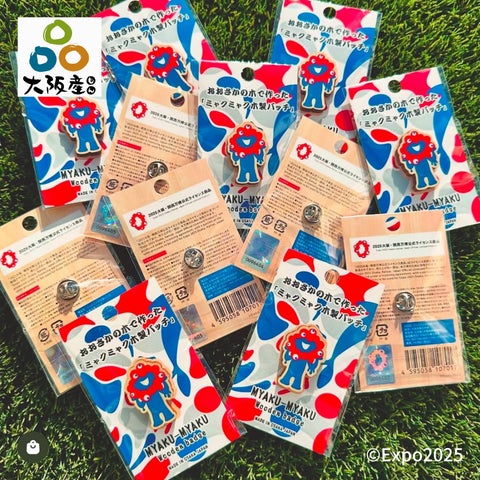 新発売の「黒ミャクミャク木製バッチ」や、再販される「ミャクミャク木製バッチ」は、かねひさ株式会社の公式オンラインストアで購入できます。