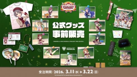 イベント公式グッズの事前販売も、2026年3月11日(水)21:00より開始しました。描きおろしアイドル9名のイラストを使用したグッズや、「ハイスクール」らしいアイテムが登場します。