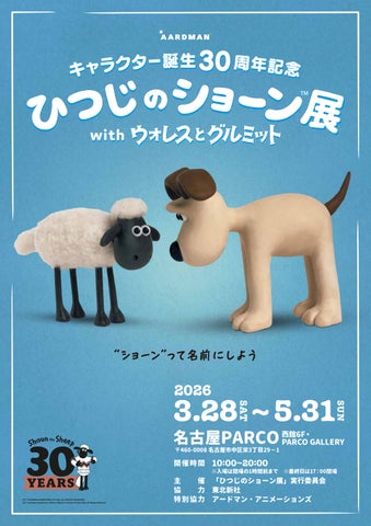 「ひつじのショーン展 with ウォレスとグルミット」が2026年3月28日より名古屋PARCOで開催します。本展では貴重な展示品の他、名古屋会場限定グッズの販売、スタンプラリーの実施を予定しています。