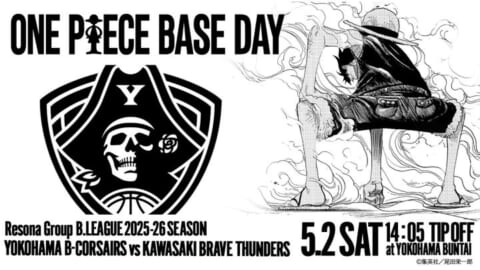 横浜ビー・コルセアーズは、5月2日(土)に川崎ブレイブサンダース戦にて、マンガアプリ「ONE PIECE BASE」とのコラボイベント「ONE PIECE BASE DAY」を開催します。