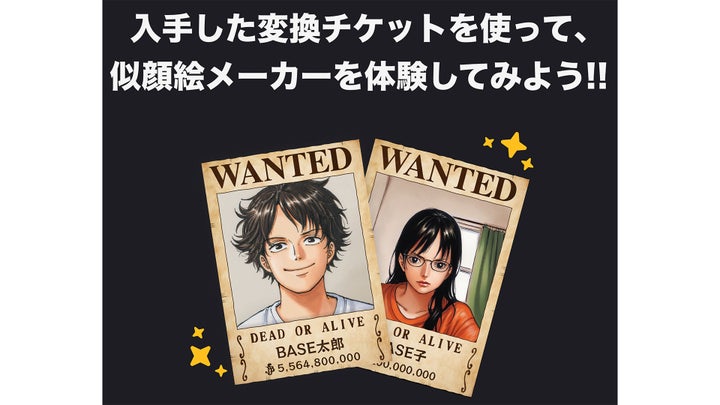 「あいことば」を入力すると「似顔絵メーカー」変換チケット(「ONE PIECE BASE DAY」開催記念 体験版)を1枚入手できます。「あいことば」は試合当日、会場内大型ビジョンなどで発表予定です。入力期限は2026年5月2日(土)23:59までです。 - SNS向け特別アイコンフレームをプレゼント