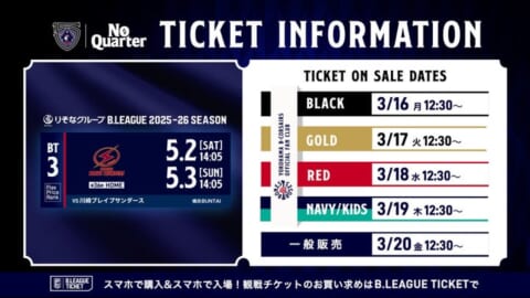 - 5月2日(土)川崎ブレイブサンダース戦 観戦チケット