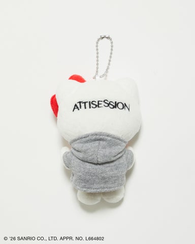 <ATTISESSION>のオリジナルパーカーを着用したハローキティのぬいぐるみチャームです。赤色の2つのリボンと後ろのブランドロゴが特別感を演出します。バッグやポーチに添えるだけでアクセントになり、ご自身への特別なひと品としても、贈り物としても喜ばれるアイテムです。