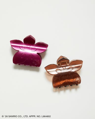 90年代のムードを感じるフラワーモチーフのヘアクリップです。立体的な花のフォルムにブランドイニシャルと、右下にハローキティが寝ているフェイスを添えたレトロガーリーなデザイン。ヘアクリップとしてはもちろん、トートバッグやミニバッグの持ち手につけてバッグチャームとしてもトレンド感を楽しめます。
